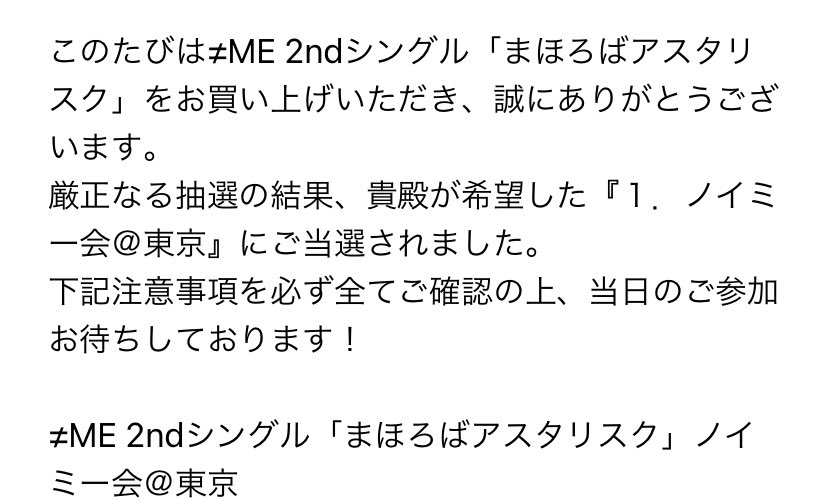 [≠ME] 2ndシングル『 ノイミー会東京 』メールが届き始めた模様…