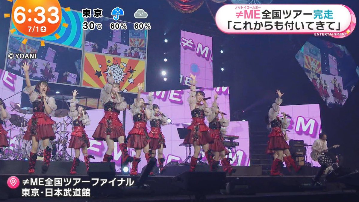 [ノイミー] 7/1放送、めざましどようび「≠ME全国ツアーファイナル日本武道館」の模様をオンエアー!!!
