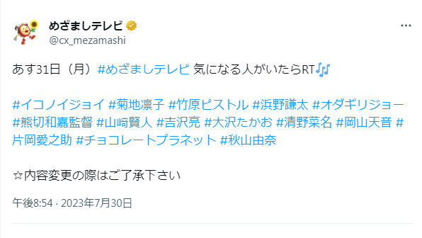— めざましテレビ (@cx_mezamashi) July 30, 2023