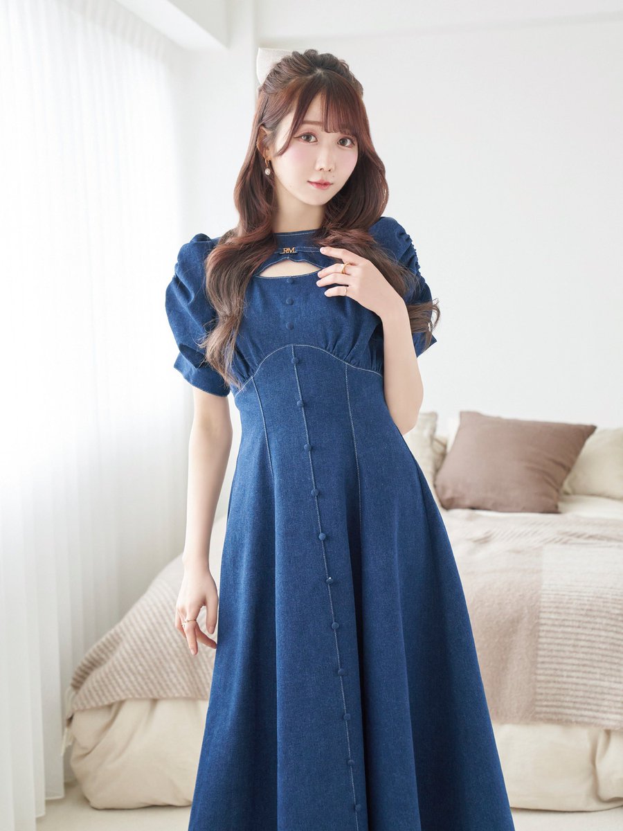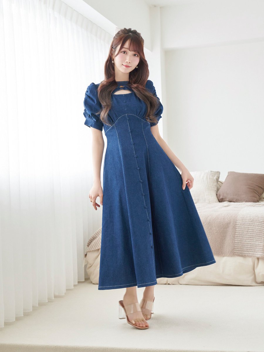 "Denim puff sleeves dress"