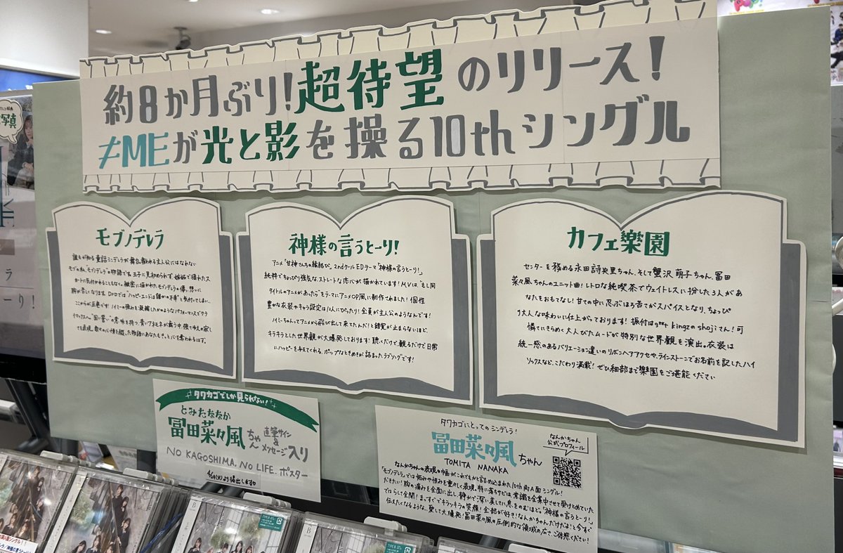 [ノイミー] (10th 両A面シングル)タワ鹿児島さんの手書きPOPめちゃセンスいいな素晴らしい…【冨田菜々風】