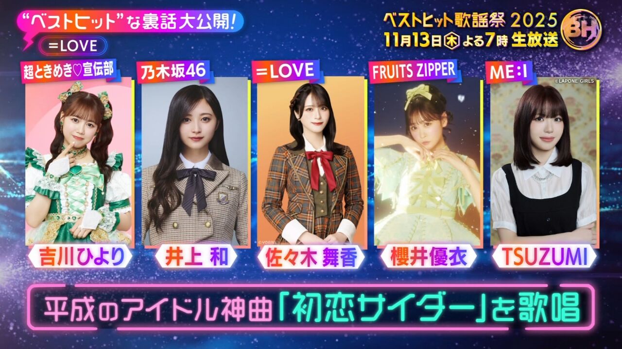 — ベストヒット歌謡祭2025【公式】|11月13日(木)よる7時から生放送 (@besthitskayosai) November 10, 2025
